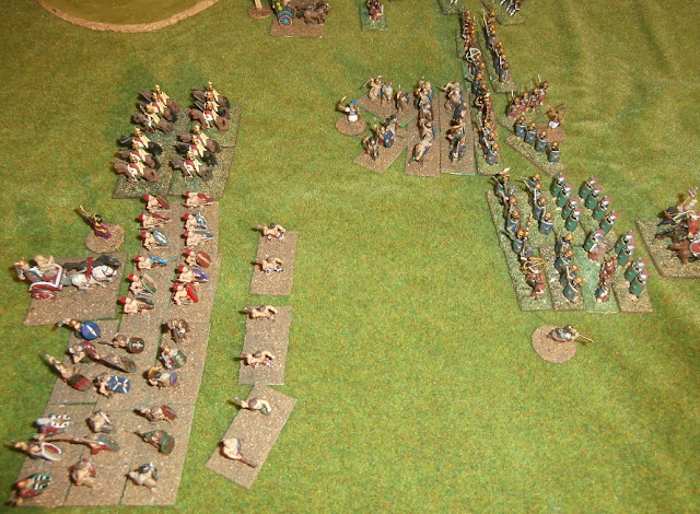 The Britons on the left also close to javelin range inflicting casualties on the I Auxiliary Cohort.